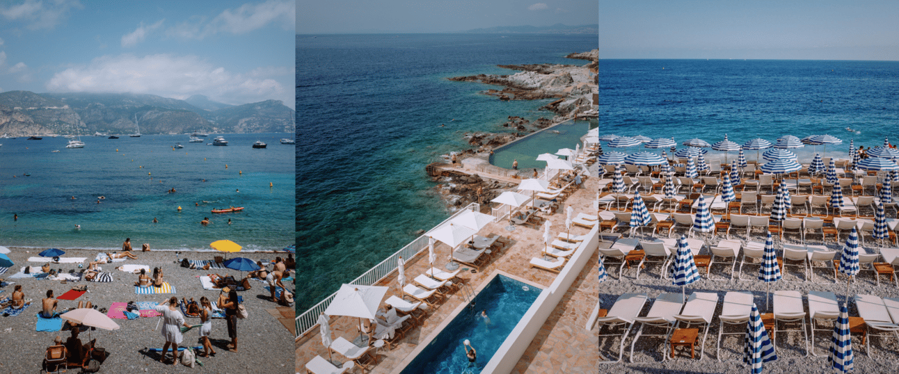 Right to left: Paloma Beach, La Roche Rouge, a beach club in Nice