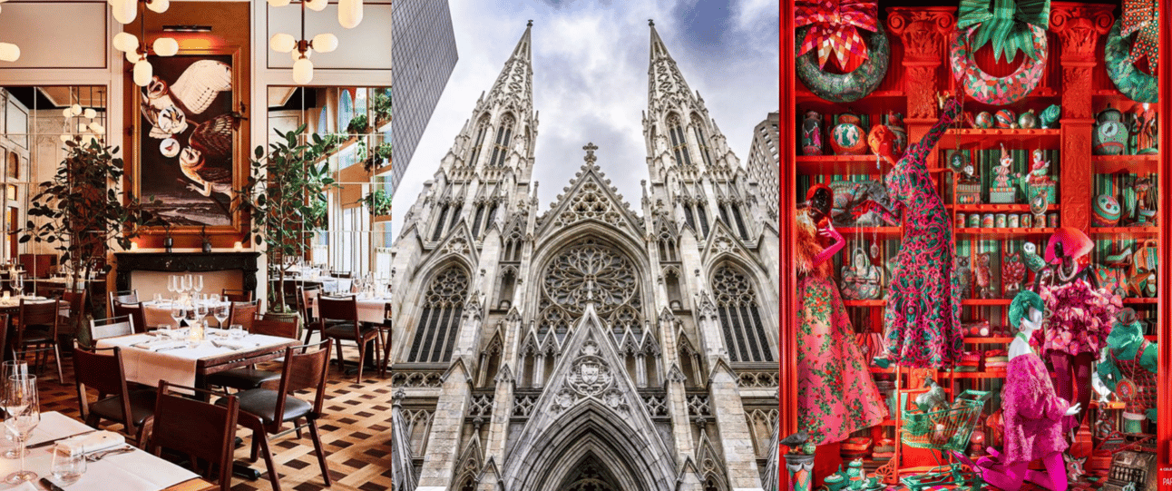 Left: Quality Bistro, Center: St. Patrick's Cathedral, Right: Bergdorf Goodman Windows