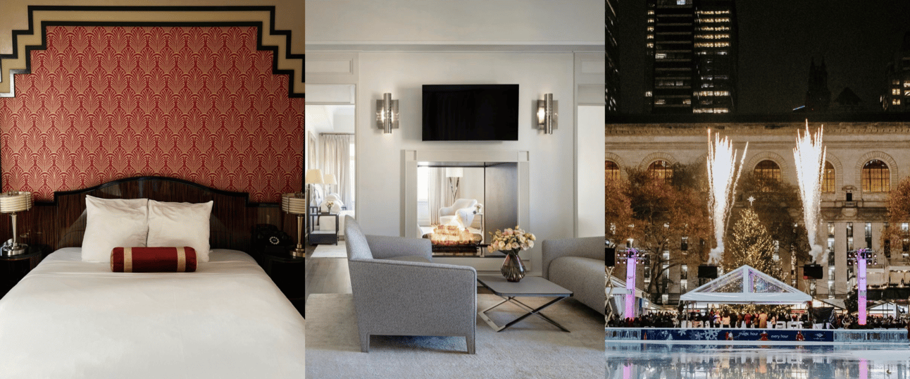 Left and center: The Mark Hotel, Right: Bryant Park Rink