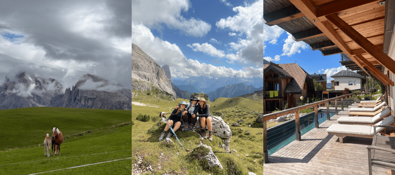 For part of the trip, you will be doing a hut-to-hut hiking trip so you will be staying at rifugios along the trail. Rifugio Pian Di Cengia was our favorite stop along the way. Their dormitory sleeps 15 hikers and had some of the most incredible food we had the entire trip. After 3 days of hiking you are going to want to relax and indulge in more luxurious accommodations. Berg Hotel has some of the most stunning views of the Sesto Dolomites and has 4 pools, 8 saunas, and an incredible spa where you can unwind after a few days in the mountains.